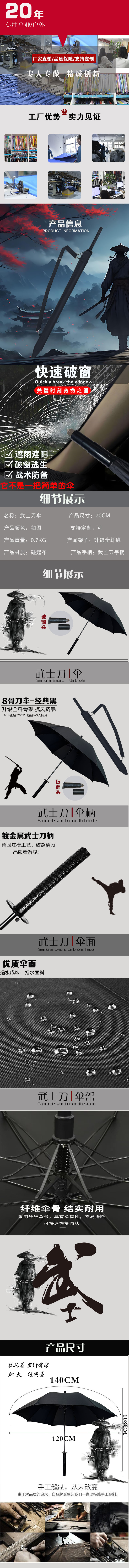 武士傘帶破窗器超大尺寸 自救功能拉滿 動漫風長柄雨傘